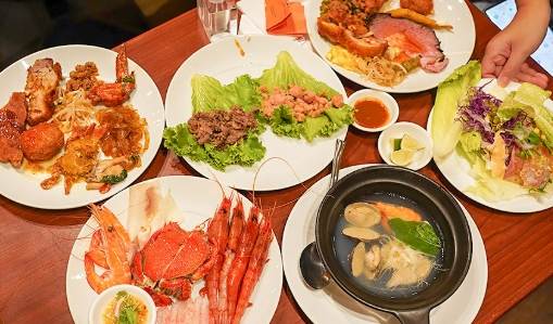 全臺唯一一家泰式海鮮自助餐!喜歡酸辣泰式風味的人一定會愛上。整體裝潢充滿南洋風情,氣氛熱鬧。主打新鮮海鮮搭配泰式料理手法。生食區有生魚片、鮮蝦(天使紅蝦搶手)、淡菜等。熱食區充滿泰式經典:綠咖哩椰汁雞、酸辣海鮮湯(冬蔭功)、椒麻雞、月亮蝦餅、打拋豬、泰式炒河粉Pad Thai 等等,風味都頗道地,酸辣夠勁。甜點區也有摩摩喳喳、椰漿西米露等泰式甜品。整體口味重,適合喜歡刺激味蕾的朋友。