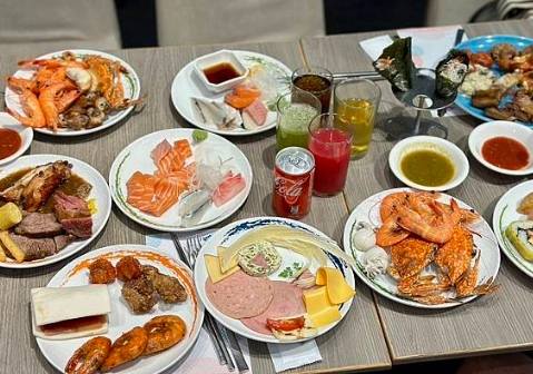 空間超級超級大!號稱是臺北最大的buffet餐廳之一。菜色種類也是多到驚人,橫跨中、西、日、義、東南亞等。海鮮、生魚片、牛排、烤鴨、港點、熱炒、炸物、甜點...應有盡有。我覺得它的優勢在於「種類齊全」,很適合聚餐時大家口味不一的情況,總能找到想吃的。哈根達斯冰淇淋無限供應是加分點。不過因為場地超大,熱食區分散,有些菜走到位置上可能稍涼了點,建議少量多取。