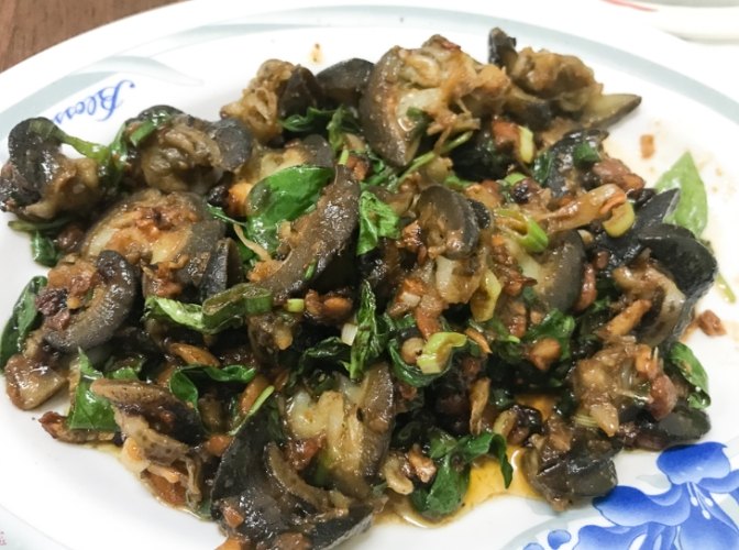 - :海瓜子吐沙吐得很乾淨,大火快炒加入九層塔、蒜頭、辣椒,鹹香微辣,湯汁鮮美,適合配啤酒或當下酒菜。吸吮殼邊湯汁是樂趣所在。