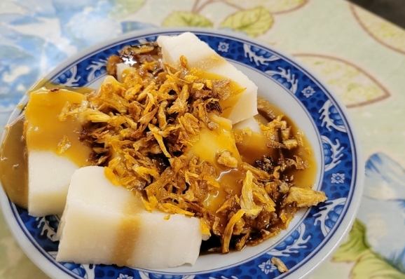 - 介紹: 純手工製作的古早味點心!油蔥粿口感紮實Q彈,米香濃郁,滿滿的油蔥酥香氣四溢。芋粿則是吃得到真材實料的芋頭絲或小塊,真芋頭香氣十足。淋上特調醬油膏和甜辣醬,簡單卻令人回味。買回家當點心或早餐都很棒。