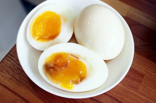 - 溏心蛋黃(蛋白凝固,蛋黃液態): 水滾後煮 6-7分鐘 (看蛋大小和火力)。立刻冰鎮。