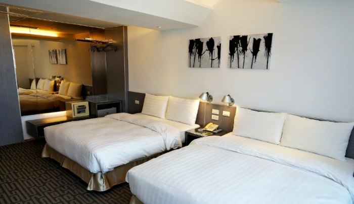 - 名字很洋派,但骨子裡是實在的商旅。地點就在前站圓環旁,舊大樓改建,公共空間有重新裝潢過。房間內部坦白說看得出歲月痕跡,但該有的都有,維護得算整潔。