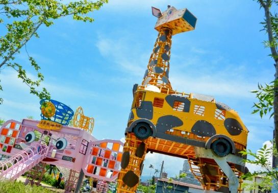 這地方小巧又有特色!是由舊客運站改造的創意空間,保留了部分舊車站元素,結合了藝術裝置和遊戲設施。最引人注目的就是戶外那幾隻巨大的長頸鹿、大象雕塑,小朋友可以鑽進去玩。室內空間規劃成: